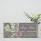 Cartão de menu com primavera vivo florescendo em tons movidos e mudados contra um pano de fundo de madeira de noz escura. Um simples texto branco permite que o seu convidado saiba o que está em jogo. Este design faz parte da nossa Coleção Hellebore Harvest da Caixa de Joias. Visite nossa loja para mais designs.