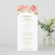 Este cartão de cardápio de flores de pêssego e rosa é perfeito para um casamento elegante. O design floral apresenta um belo arranjo de peônias de aquarela em tons de blush e coral, combinado com uma caligrafia de folha de ouro afiada. Nota: Este design não apresenta folha de ouro real. É um gráfico de alta qualidade feito para se parecer com folhas de ouro.