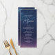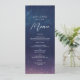 Ponha o tom para uma experiência mágica de jantar com este elegante cartão celestial de casamento. Apresentando um marinho sonhador e fundo violeta de céu noturno estrelado, este menu lista lindamente suas entradas, entradas e sobremesas em um layout romântico e na moda. Perfeito para casamentos temáticos, cósmicos e noturnos, esta design adiciona um toque de maravilha às suas mesas de recepção. Personalize facilmente o texto para combinar com a sua refeição de casamento e o tema celestial geral.