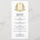 Cartão de Menu Clássico de Casamento Crest Dourado