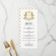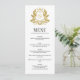 Cartão de Menu Clássico de Casamento Crest Dourado