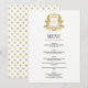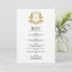 Cartão de Menu Clássico de Casamento Crest Dourado