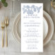 Celebre com estilo com este elegante cartão de menu de almoço de noivado "Pérola Perfeita" azul poeira. Com delicadas ilustrações de peras desenhadas à mão, flores e um beija-flor, este design moderno e alto é perfeito para exibir um menu de chá de panela ou almoço de noivado curado. Totalmente personalizável — edite os itens do menu, fontes e cores do texto para combinar com o tema do seu evento.