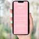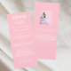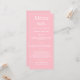 Cartão de menu de festa de aniversário. Personalize e adicione um nome, idade, data e menu. Um fundo cor-de-rosa. Letras brancas coloridas. Adicione uma foto da aniversariante, fatos divertidos.