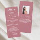 Cartão de menu de festa de aniversário. Personalize e adicione um nome, idade, data e menu. Um fundo rosa dourado. Letras brancas coloridas. Adicione uma foto da aniversariante, fatos divertidos.