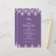 Você pode personalizar o texto neste casamento floral arabesco roxo e branco damasco ou no cartão de menus especial. Para alterar o texto, use a opção personalizar. Para alterações mais abrangentes no menu, incluindo alterações na fonte, tamanhos de fonte, cor de fonte ou posicionamento de texto, use a opção personalizar. Uma escolha bela e elegante para um casamento em qualquer estação ou em qualquer outra ocasião especial como aposentadoria, aniversário ou festa de aniversário. Roxo e branco é uma escolha na moda e bonito.