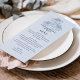 Este elegante design de cardápio de casamento apresenta um fundo azul claro com uma ilustração desenhada pela mão e uma tipografia inspirada na vintage em tons azuis empoeirados. A parte traseira da placa é da mesma cor. Esta design seria uma escolha fabulosa para um casamento em qualquer estação. Consulte a coleção para coordenar itens!