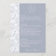 Cartão de Menu de Casamento Azul Dusty Monograma