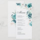 Cartão de Menu de Casamento Botânico Turquesa