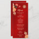 Este tradicional cartaz de cardápio chinês apresenta flores vermelhas, laranja e neutra de pénia e um símbolo dourado de felicidade dupla em um fundo vermelho brilhante. Com nomes personalizados de noiva e noivo, a data do casamento e um texto de menu personalizado. O guião manuscrito e a fonte sans serif dão ao design um toque moderno.