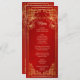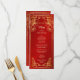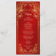A cereja vermelha floresce e um símbolo de felicidade dupla dourada num fundo vermelho brilhante. Com nomes personalizados de noiva e noivo, a data do casamento e um texto de menu personalizado.