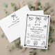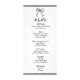 O simples cartão de menu de casamento econômico é lindamente projetado com um toque de estilo vintage. O cartão apresenta um laço caprichoso rabiscado e tipografia desenhada à mão em preto e branco. Há também duas bordas nas partes superior e inferior.