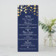 Cartão de Menu de Casamento com Pontos Modernos Azul e Dourado Falso