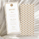 Refinado e eterno, este cartão de menu de casamento apresenta um sotaque elegante de concha dourada e um esquema clássico. Perfeito para casamentos costeiros ou de destino com tema sofisticado. Personalize com seus nomes e seleções de menu para um detalhe de mesa polido.