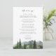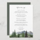 Celebre seu dia especial com este cartão de menu de casamento 5x7 da coleção Timberline da Redwood & Vine Design Co. Com uma ilustração tranquila de montanha e floresta verde com tipografia limpa e moderna, este cartão complementa lindamente um casamento rústico ou de inverno. Disponível impresso ou como download digital, é ideal para casamentos inspirados na natureza, locais florestais ou recepções ao ar livre elegantes. Personalize facilmente para se adequar às suas opções de jantar ou buffet.