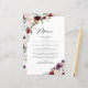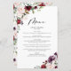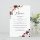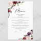 Adicione um sotaque floral de outono à capa de sopa do seu evento com este cartão de menu personalizável. Apresenta flores rosadas a cores aquáticas, vermelhas e pinceladas, cor-de-rosa, com sotaque foliar. Este cartão floral é perfeito para casamentos de outono, chás de panela, chás de fraldas e aniversários. Personalize adicionando nomes, data e detalhes do menu.