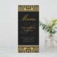 Tema: Dourado negro, tribal, marroquino, arabesco, damask, Oriente médio, alternativo, Batik, Leste. Menu personalizável de recepção de casamento dupla lateral ou menu jante com outro lado da carta com layout elegante para noiva e noiva, datas de casamento e monograma/iniciais. Personalize com suas informações especiais de evento. O estilo de design versátil do alternativo do torna esta placa adequada para qualquer outra ocasião especial, por exemplo: festa de janto, chá de panela, jantadas de ensaio ou janto de aniversário.