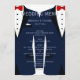 Cartão de cardápio de casamento azul e branco com gay com texto alterável