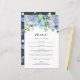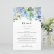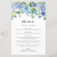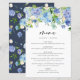 Cartão de Menu de Casamento de Hydrangeas Azul de