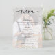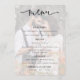 Menu de Casamento de Script de Sobreposição Transparente de Foto Moderna. Uma tipografia informal em preto para o título principal Menu que complementa o resto do texto que você pode facilmente personalizar. Substitua a foto de exemplo que é pintada em segundo plano com seu próprio favorito.