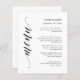Aumente a elegância da sua recepção de casamento com cartões clássicos de cardápio de cartaz de rico para configurações de prato, perfeito para uma variedade de eventos de escala superior. Esses cartões de menu são ideais para casamentos formais de gravata negra, sofisticadas recepções de salão, cerimônias tradicionais de eterno e casamentos de destino luxuosos. Apresentando tipografia de script clássico e um design elegante, eles complementam a decoração refinada, as configurações de mesa chic e os esquemas clássicos de cor. Quer você esteja hospedando um janto íntimo ou uma grande celebração, esses cartões de menu fornecem um na moda e uma maneira polida de apresentar seu menu enquanto adiciona um toque de beleza do eterno ao seu dia especial.