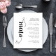Adicione um toque de elegância à sua recepção de casamento com cartões de cardápio de casamento elegantes de script de rico para configurações de prato, perfeito para uma variedade de eventos sofisticados. Estes cartões de menu são ideais para casamentos formais de gravata negra, recepções de salão luxuoso, cerimônias românticas de jardim e casamentos de destino de eterno. Apresentando uma bela tipografia na escrita do rico, complementam perfeitamente a decoração elegante, as definições de mesa refinadas e os esquemas clássicos de cor. Quer você esteja hospedando um janto íntimo ou uma grande celebração, esses cartões de menu oferecem uma maneira na moda e graciosa de apresentar seu menu enquanto melhora a beleza geral e a sofisticação de seu dia especial.