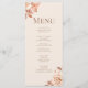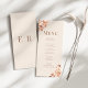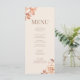 Aumente sua recepção de casamento com nosso Cartão de Menu Floral Monograma Dourado Moderno. Esse sofisticado design apresenta um arranjo delicado de ouro rosa e sotaque floral cremoso contra fundo de pó embebido com tom de pêssego. A elegante tipografia "Mocca Mousse" destaca seu monograma personalizado no topo, acrescentando um talento contemporâneo a esta refinada papelaria de casamento. Quer esteja hospedando um janto formal ou uma recepção chic boho, este cartão de menu adicionará um toque na moda e coeso às configurações de mesa. Totalmente personalizável para mostrar os pratos escolhidos, é o detalhe perfeito para impressionar seus convidados e juntar seu tema.