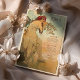 Este belo cartão de cardápio do Art Nouveau traz um charme sereno e inspirado na natureza para o seu casamento. A design apresenta uma mulher tranquila adornada com uma coroa de flores vermelhas, sentada pacificamente pela borda da água com ramificações fluentes e folhagem macia à sua volta. A paleta de cor suave de blues macios, beges quentes e verduras mutadas melhora a atmosfera sonhadora e vintage dessa carta, perfeita para casamentos com tema natural ou boêmico. O verso do cartão apresenta o menu com uma disposição refinada, e fazer-o como um complemento elegante à decoração do seu dia especial.