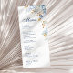Cartão de Menu de Casamento Floral Azul e Dourado