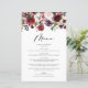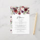 Adicione um sotaque floral de outono à capa de sopa do seu evento com este cartão de menu personalizável. Apresenta a terra floral de cor-de-água, de flores rosas, vermelhas e pinceladas, com sotaque foliar. Este cartão floral é perfeito para casamentos de outono, chás de panela, chás de fraldas e aniversários. Personalize adicionando nomes, data e detalhes do menu.