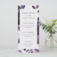 Cartão de Menu de Casamento Floral de Roxo e Cinza