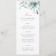 Cartões de cardápio impressos. Use as ferramentas de design para personalizar o layout, as cores de fundo e o texto com os detalhes do menu de casamento. Este elegante design apresenta uma borda floral de cor d'água de verde suculento e floresce com texto dourado e marinho.