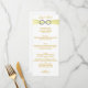 Realce a decoração adicionando um cartão de menu. Enquanto seus convidados aguardam ansiosamente a entrada da noiva e do noivo ou a apresentação do convidado de honra, eles podem encontrar um cartão de menu em seu cenário, acrescenta um toque agradável. Personalize e crie o menu adicionando e alterando o texto nos campos fornecidos. Você pode alterar o estilo, o tamanho e a cor da fonte, o tipo de papel, bem como a cor do plano de fundo.
