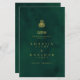 Cartão de Menu de Casamento Islâmico Dourado com Esmeralda Real.