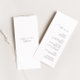 Único e prático, este menu moderno inclui o nome de cada convidado, eliminando a necessidade de cartões de lugar separados. Perfeito para adicionar um toque pessoal e sofisticado ao seu casamento ou chá de noiva.