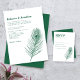 O cartão Mínimo do Dia de Casamento de design apresenta uma elegante ilustração de linha de pena de pavão com um tema de cor verde esmeralda. Design tipográfico moderno e limpo, esta peça está pronta para você personalizar com os detalhes do menu. Parte de uma variedade cada vez maior de artigos de papelaria, por favor, navegue no Emerald Green Peacock Feather Wedding Suite para ver itens correspondentes.