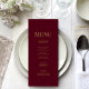 Melhore sua capa de casamento com nosso Cartão de Menu de Casamento de Monograma Minimalista Burgundy. Apresentando o menu de um lado e monogramas delicados do outro contra um fundo de sereno burgundy. Este cartão adiciona um toque de elegância minimalista ao seu decoro de recepção.