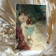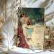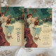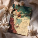 Traga seus convidados de casamento para o romance de uma noite parisiense com este cartão de cardápio inspirado no Art Nouveau. Apresentando uma cena elegante, num vivo encontro à noite ao ar livre, este cartão capta a essência do charme vintage e da sofisticação. A mulher de vestido gracioso, realçada pela iluminação suave e cercada por uma intrincada mistura de folhagem e decoração, evoca uma elegância eterno. Com uma paleta colorida de azuis profundos, vermelhos ricos e cremes gentis, essa design é perfeita para casamentos com tema vintage, parisiense ou noturno. O cardápio é belamente apresentado no fundo na tipografia clássica, acrescentando um toque requintado à decoração do casamento.