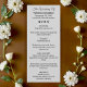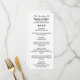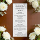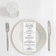 Um cartão de menu de casamento com texto preto em fundo branco para casais que procuram uma combinação de cores clássica e atemporal que possa complementar vários temas de casamento. Também é adequado para casais que preferem um design baseado em texto sem elementos de fundo para legibilidade. O texto preto contrastando com o fundo branco também melhora a legibilidade. O texto está alinhado ao centro e as fontes utilizadas são caligrafia, script e sem serifa. As fontes caligrafia e script são usadas para melhorar o design, enquanto a fonte sem serifa é usada para melhorar a legibilidade. Personalize digitando os nomes da noiva e do noivo, data, local e detalhes do menu. Você também pode alterar a redação na ferramenta de design, incluindo o estilo da fonte, cor da fonte e cor do fundo. Por favor, verifique a aparência da frente e do verso após digitar o texto. Se a aparência for agradável para você, você pode fazer seu pedido agora. Se precisar redimensionar ou reposicionar o texto, ajuste na ferramenta de design. Para a noiva e o noivo, parabéns pelo noivado! Desejando a ambos uma vida inteira repleta de amor e felicidade.