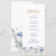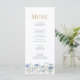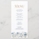 Aumente sua recepção de casamento com nosso Cartão de Menu de Casamento de Prados Azul-Vazio. Este elegante cardápio apresenta um belo design de aquarela de flores silvestres azuis francesas, incluindo as hydrangeas e os morangos, arranjados num padrão sereno de prados. A design suave e inspirada na natureza se emparelha perfeitamente com casamentos de jardim, rústicos ou de temas bóticos. Personalizável com seus itens de menu e detalhes personalizados de casamento, este cartão não só adiciona charme às configurações de sua mesa, como também permite que os convidados desfrutem de uma prévia na moda da refeição deliciosa à frente. Uma adição perfeita à sua decoração de recepção de casamento.