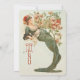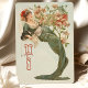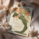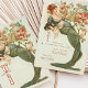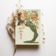 Este espantoso cartão de cardápio Art Nouveau captura a elegância do eterno com uma ilustração da deusa floral, inspirada pela arte safra. A frente mostra uma deusa serena adornada com flores vibrantes, colocada contra um pano de fundo de verde sábio e marfim, com sotaques de coral, vermelho rubi e verde florestal. A intrincada design apresenta elementos florais delicados que belamente enquadram a deusa, acrescentando um toque romântico a qualquer tema de casamento. O verso fornece um menu detalhado em fontes sofisticadas de serifa, com opções estabelecidas graciosamente para seus convidados. Perfeito para casamentos inspirados na vintage que buscam um toque de charme clássico de Art Nouveau e sofisticação refinada.