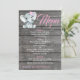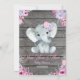 Chá de fraldas de elefante/amendoim muito fofo Cartão de Menu Editável com flores rústicas cor-de-água rosa e púrpura e fundo de madeira. Todos os campos são editáveis. Adequado para aniversário ou Chás de fraldas, chá de Fralda, gole e veja.