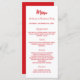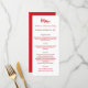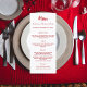 cartão de menu de jantar de festa de Natal. Personalize e adicione um nome/evento, data e o menu. Um fundo branco na frente, texto vermelho.