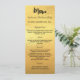 Cartão de janto da festa de Natal. Personalize e adicione um nome/evento, data e menu. Um fundo de aparência dourada, texto preto.