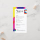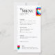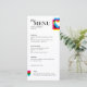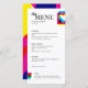 Uma placa de menu de casamento plana, orientada por design, apresentando um brilhante pop de cor no estilo de impressão CMYK.