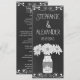 Cartão de menu de casamento popular no estilo quadro negro é feito com um desenho de redemoinho com bordas de corações e uma ilustração original de um pote de pedras moderno segurando flores de crisântemo brancas e um coração personalizado com as iniciais dos noivos, dando um efeito de giz. A tipografia caprichosa dá ao cartão de menu um visual elegantemente casual. Itens coordenados também disponíveis. Alguns gráficos por clipartSingles na loja etsy.com