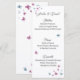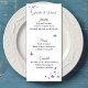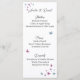 Celebre a época do amor com este cartão de cardápio maravilhosamente trabalhado adorado com delicadas borboletas de verão. Projetado em tons pastéis suaves, evoca o encanto de uma festa de jardim iluminado pelo sol ou de uma romântica solitária do exterior. Perfeito para casamentos de primavera e verão, recepções de jardim ou comemorações de temas de borboletas.