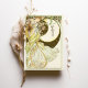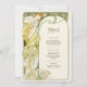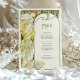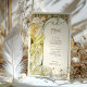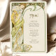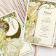 Capturar o encanto de uma noite iluminada com este cardápio de casamento inspirado em Art Nouveau. Apresentando uma mulher graciosa cercada por flores florescentes e enquadrada por uma grande lua crescente, esta design é uma maravilhosa mistura de beleza celestial e natural. Com verduras suaves, amarelos ouros e preto rico em contraste com o pano de fundo do marfim, esta carta evoca romance e elegância num estilo antigo que lembra a obra de Alphonse Mucha. A parte de trás do cartão apresenta o menu de forma elegante com uma fonte clássica e refinada. Ideal para casamentos com um tema romântico, vintage ou celestial, este cartão de cardápio traz um charme eterno para o seu dia especial.