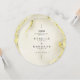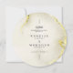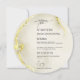 Cartões de Menu do Círculo Caseiro Islâmico com Textura Dourada Luxuosa de Mármore. Este cardápio de casamento redondo é um verdadeiro chuveiro! A frente tem um belo fundo de textura dourada com elegante caligrafia negra. Começa com a frase árabe 'wa khalaqnakum azwaja' (que significa 'E nós criamos você em pares'), seguida pelos nomes dos casais, a data do casamento e o local. A parte de trás também é textura dourada de mármore, e ela exibe elegantemente 'O Menu' no topo. O cardápio em si é belamente apresentado na caligrafia dourada, listando todas as deliciosas iniciações, cursos principais e sobremesas. É um toque muito especial para sua celebração de casamento.