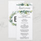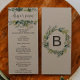 Este cartão de janto de folhagem é perfeito para um casamento rústico. A design apresenta um quadro de folhas verdes e botânicos com folhas verdes. O apoio apresenta uma coroa de países correspondente que pode ser personalizada com o monograma do casal. Este menu pode ser usado para recepção de casamento, janto de ensaio ou qualquer evento.